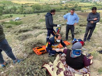Afyonkarahisar'ın Sandıklı İlçesinde Yaylaya Kekik Toplamaya Giden Yaşlı Kadının Ayağı Kırılınca İmdadına 112 Ekipleri Yetişti. Yürüyerek Kadına Ulaşan Ekipler, İlk Müdahalenin Ardından 1 Kilometre Uzaklıktaki Ambulansa Sedye İle Taşıyarak Hastaneye Ulaştırdılar.