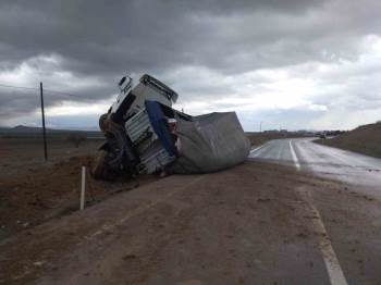 Yem Yüklü Tırın Devrildiği Kazada, Sürücü Olayı Yara Almadan Atlattı