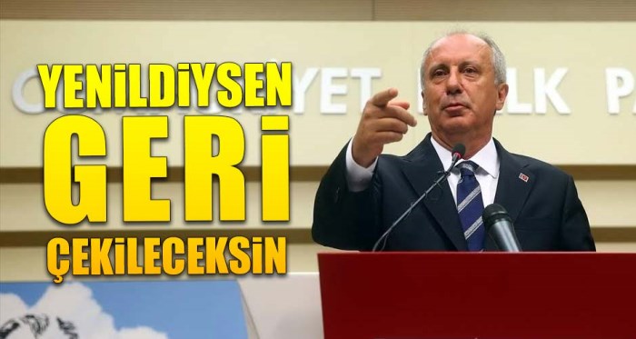 CHP'nin 24 Haziran seçimlerindeki cumhurbaşkanı adayı Muharrem İnce bir açıklama daha yaparak "Yenildiğini kabul edemeyen yenemez, yenildiysen geri çekileceksin, hazırlıklarını yapacaksın, bahane üretmeyeceksin" dedi.