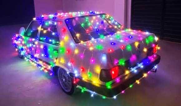 Eskişehir’de bir sürücü, 2025 yılının son günlerinde aracını boydan boya ışıklarla süsleyerek vatandaşlara renkli bir yılbaşı sürprizi yaptı.