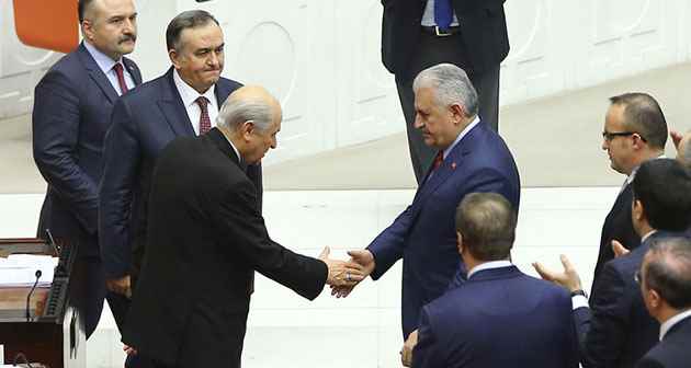 Yıldırım, konuşmasının ardından MHP Grubunun sıralarına giderek, Genel Başkan Devlet Bahçeli ile tokalaştı.