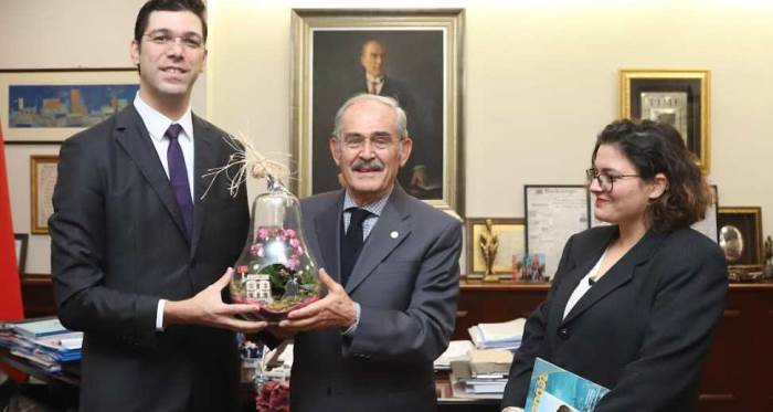Eskişehir Büyükşehir Belediye Başkanı Prof. Dr. Yılmaz Büyükerşen’e yönelik ziyaretler sürüyor. Bu kapsamda Başkan Büyükerşen’in akademik yaşamı sırasında kurduğu Anadolu Üniversitesi kurduğu İşitme Engelli Çocuklar Eğitim, Araştırma ve Uygulama Merkezi (İÇEM) mezunu olan bilgisayar mühendisi Dr. Burak Uyanık ve eşi Gizem Son Uyanık, Büyükerşen’i makamında ziyaret etti.