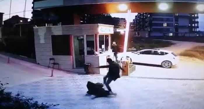 Bursa’da evlerinde yeğenini göremeyen şahıs site güvenliğini dövdü. Dövme anı ise anbean kameralara yansıdı.