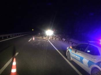 Yola Düşen Kaya Parçaları 4 Araca Zarar Verdi