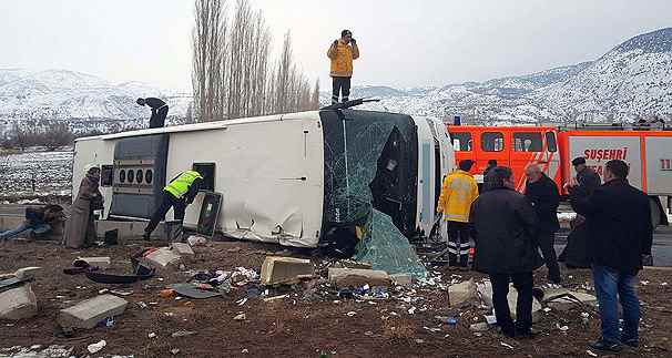 Kazada otobüs sürücüsü Kurt yaşamını yitirdi, 36 yolcu yaralandı.