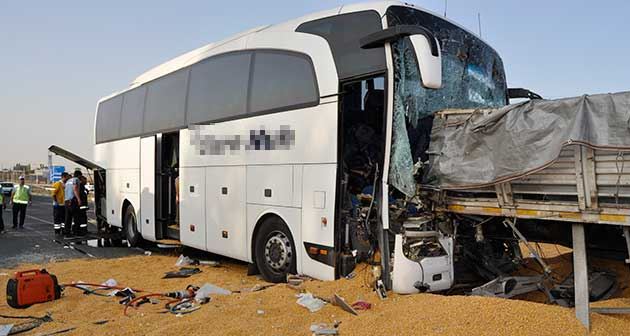 Yolcu otobüsü mısır yüklü TIR'a çarptı