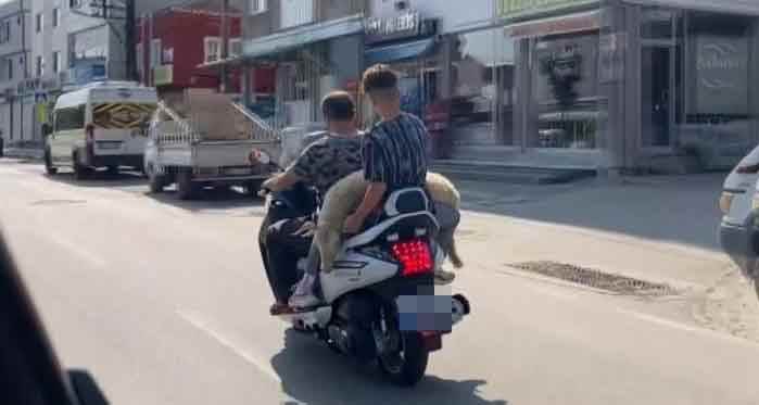 Bursa'nın merkez Osmangazi ilçesi Çelebi Mehmet bulvarında motosiklette 2 kişinin aralarına aldığı koyunu görenler gözlerine inanamadı. Baba ve oğlun hayvan pazarından aldıkları hayvanı motosikletle kesim alanına götürmesi gülüşmelere sebep oldu. Kameralara yansıyan görüntüde baba ve oğul motosiklet üzerinde aralarına aldıkları koyunla yaklaşık 15 kilometre giderek kesim alanına ulaştı.