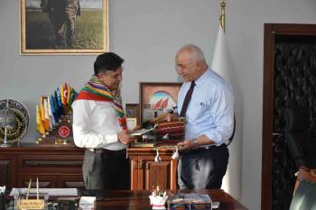 Ardından Türk Dünyası Yörük Türkmen Birliği Başkanı Tatlıoğlu, Başkan Durgut’a; Kur’an-ı Kerim, Türk bayrağı, keyfiye, heybe ve kitap gibi çeşitli hediyeler takdim etti. Başkan Durgut, hediyeler karşısında teşekkürlerini ederek bu anlamlı ziyaret için mutlu olduğunu dile getirdi.