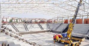 Yenikent bölgesinde yapılan 3 bin seyirci kapasiteli spor salonunun inşaatı büyük ölçüde...