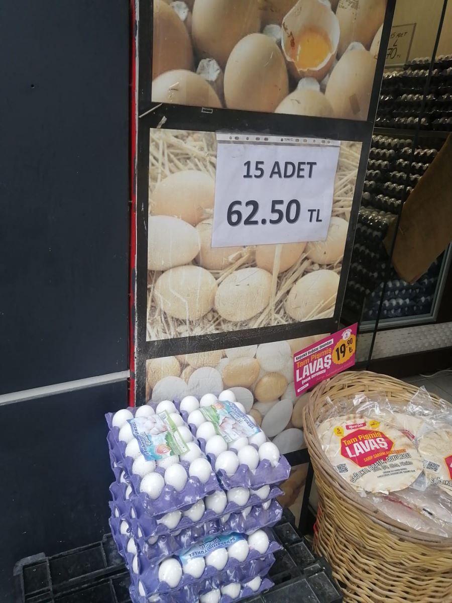 Market ve bakkallarda, 30’lu yumurta kolilerinin fiyatı 160 liraya kadar yükseldi. Bir gün arayla yapılan fiyat artışı, vatandaşların dikkatinden kaçmazken, aynı işyerinde 15 adet yumurtanın fiyatı bir günde 60 liradan 62,50 liraya çıktı.