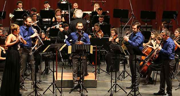 Şef Ender Sakpınar'ın orkestra şefliğini yaptığı konserde, flütte Ebru Ertek, obuada Serkan Altınok, klarnette Mertol Mutlu, kornoda Orçun Armutlu ve fagotta Orçun Ensoy oluşan grup, seslendirdikleri başarılı eserlerin sonunda müzikseverler tarafından ayakta alkışlandı.