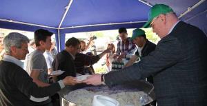 Odunpazarı Belediye Başkanı Av. Kazım Kurt, Seyyar Tuhafiyeciler ve İşportacılar Odası Eskişehir Şube Başkanı Ali Safa Şen’in de katıldığı etkinlik vatandaş tarafından yoğun ilgi gördü. Yunus Emre Halk Çarşısı’nın önünde kurulan stantta vatandaşa 2 bin kişilik pilav ikram edildi. Vatandaş pilavını Başkan Kurt’un elinden aldı.