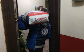 Korona virüs (Covid-19) tedbirleri kapsamında sokağa çıkma yasağı olan Bilecik merkez Ertuğrulgazi Mahallesi’ndeki ikamet ettiğini evde yalnız yaşayan 77 yaşındaki kadın, devriye gezen zabıtadan un talep etti. Ekiplere parasını veren 25 kiloluk un isteyen kadının talebinin ekipler yerine getirirken, 25 kiloluk unu birde eve kadar taşıdı.