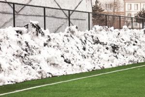 Zorlu karşılaşma öncesi zemini karla kaplı olan Abdurrahman Temel Sahası, dün saha yetkililerin çalışmaları ile temizlendi. (SS)