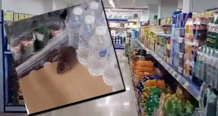 Su ve sodaların bulunduğu reyonda duran fareyi kaydeden vatandaş, “Burası Karaman'da zincir market. Görüyorsunuz reyonda kocaman bir fare. Marketi fare bastı. Sakarya Karaman'da zincir markette kocaman fare, şu anda su stantlarının orada” ifadelerini kullandı.