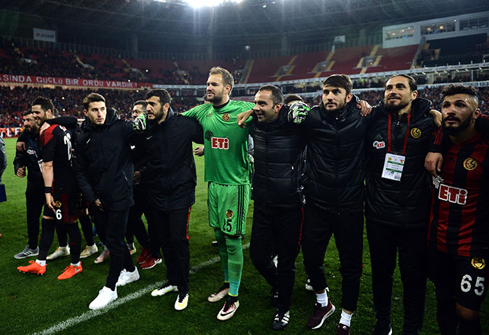Müthiş taraftarının inanılmaz desteğini arkasına alan Eskişehirspor, Göztepe’yi hezimete uğrattı. Karnaval gecesinde perdeyi dakika 25’te Erkan açtı. 35’de Dorukhan ile ilk yarıyı önde kapatan Es Es sahada fırtına gibiydi.