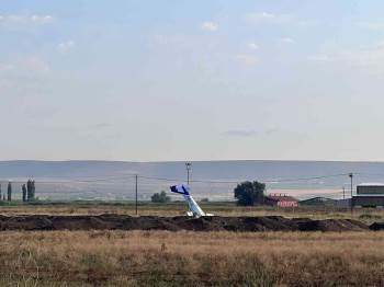 Afyonkarahisar’Da Dün Akşam Zorunlu İniş Yaptığı Açıklanan Eğitim Uçağı Sabahın İlk Işıkları İle İndiği Yerde Görüntülendi. Uçağın Yarısının Hayvanların Sulandığı Kanalın İçinde Olduğu Ve Kuyruk Kısmının Yukarı Doğru Baktığı Gözlendi.