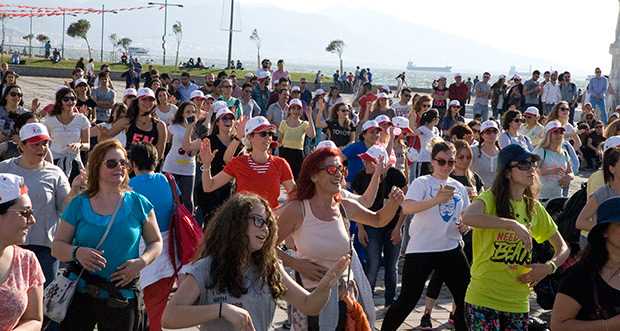İzmirli kadınlar, Dünya Sağlık İçin Hareket Gününde önemli bir sağlık problemi olan obeziteye (şişmanlık) karşı farkındalık oluşturmak amacı ile Gündoğdu meydanında toplandı. İzmir Büyükşehir Belediyesinin ev sahipliğinde; Şenpiliç ve b-fit tarafından gerçekleştirilen Dengeli Beslen Harekete Geç projesi etkinliğine katılan yaklaşık 500 kadın, Zumba Eğitmeni Atakan Uğurlu eşliğinde Zumba yaptı. Yüzlerce kadının Zumba dansına, Gündoğdu meydanını dolduran kadın, genç, yaşlı, çocuk herkes eşlik etti.